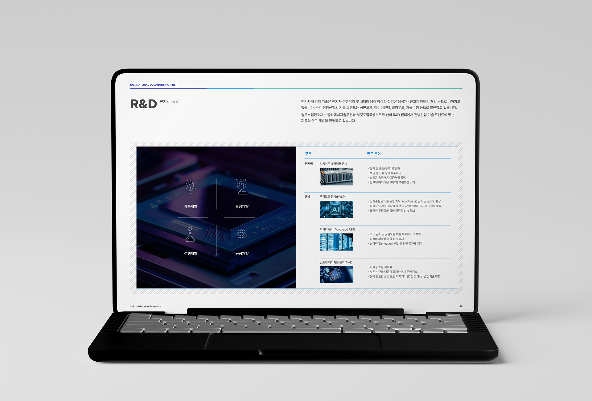 솔루스첨단소재 회사소개서 디자인